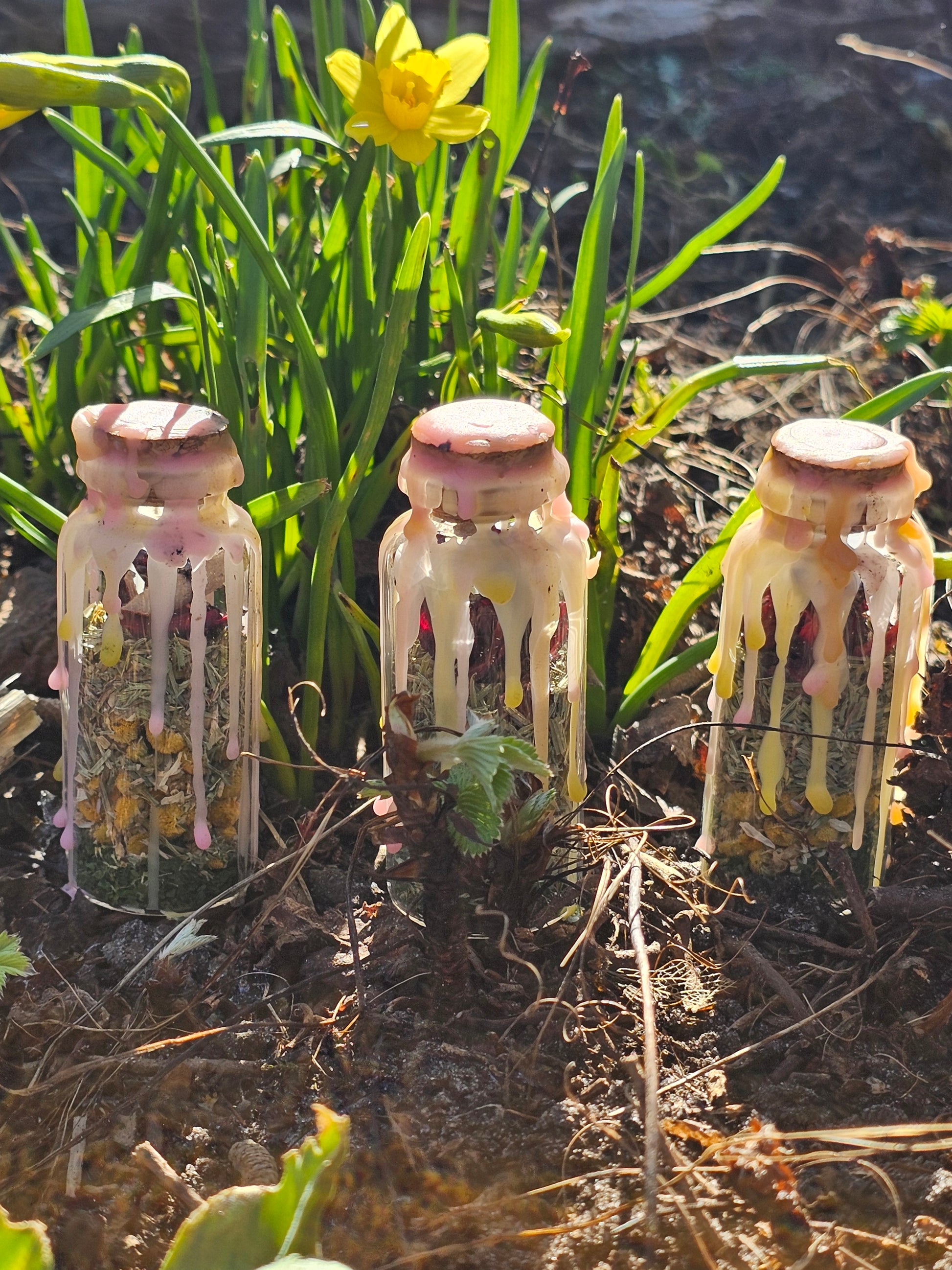 Hver eneste spell jar er skabt med omhu og intention, fyldt med nøje udvalgte urter, krystaller og naturlige elementer, der symboliserer fornyelse, overflod og kærlighed. Duften af friske blomster, kraften fra solens første stråler og jordens spirende energi samles i denne lille flaske, som bliver et kraftfuldt redskab til manifestation.